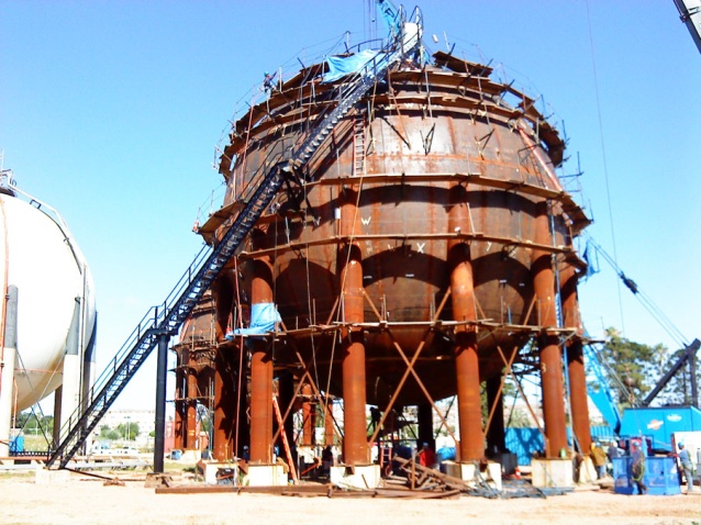 Fabricación y montaje de estructura soportante de tanques esféricos para almacenamiento de gas.