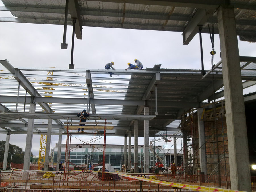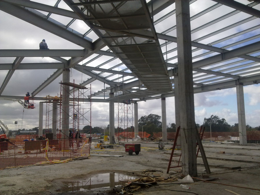 Diseño, fabricación y montaje de estructuras metálicas para techos, lucernarios y pasarelas técnicas para Shopping Costa Urbana.