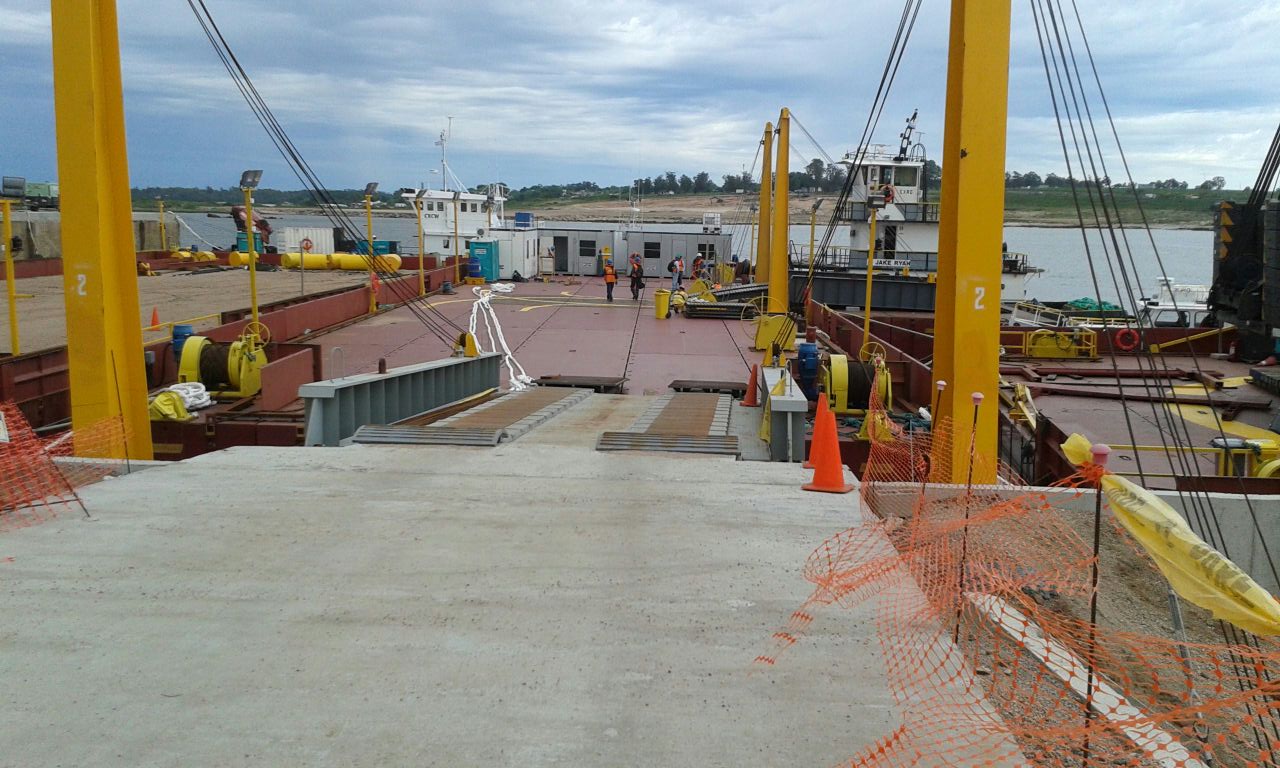 Suministro de 2 rampas pivotantes para acceso de maquinaria pesada a estructuras flotantes en obra de planta regasificadora.