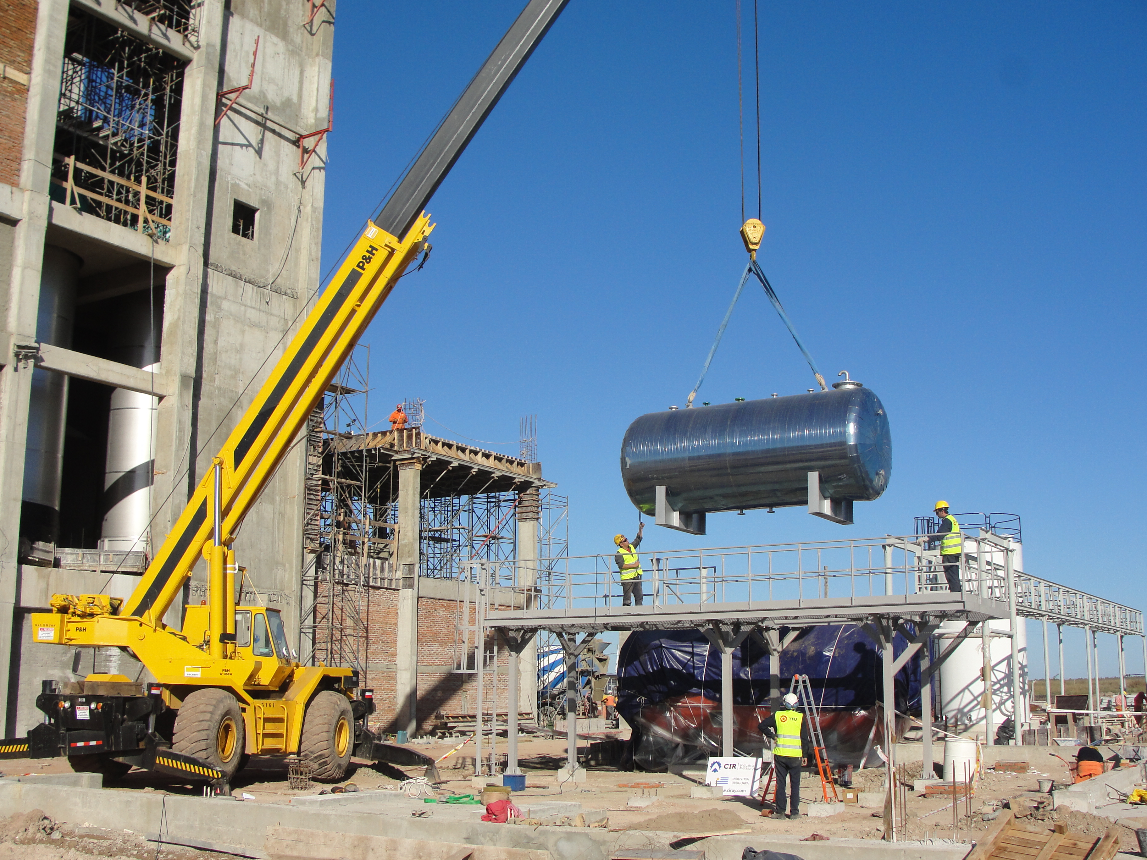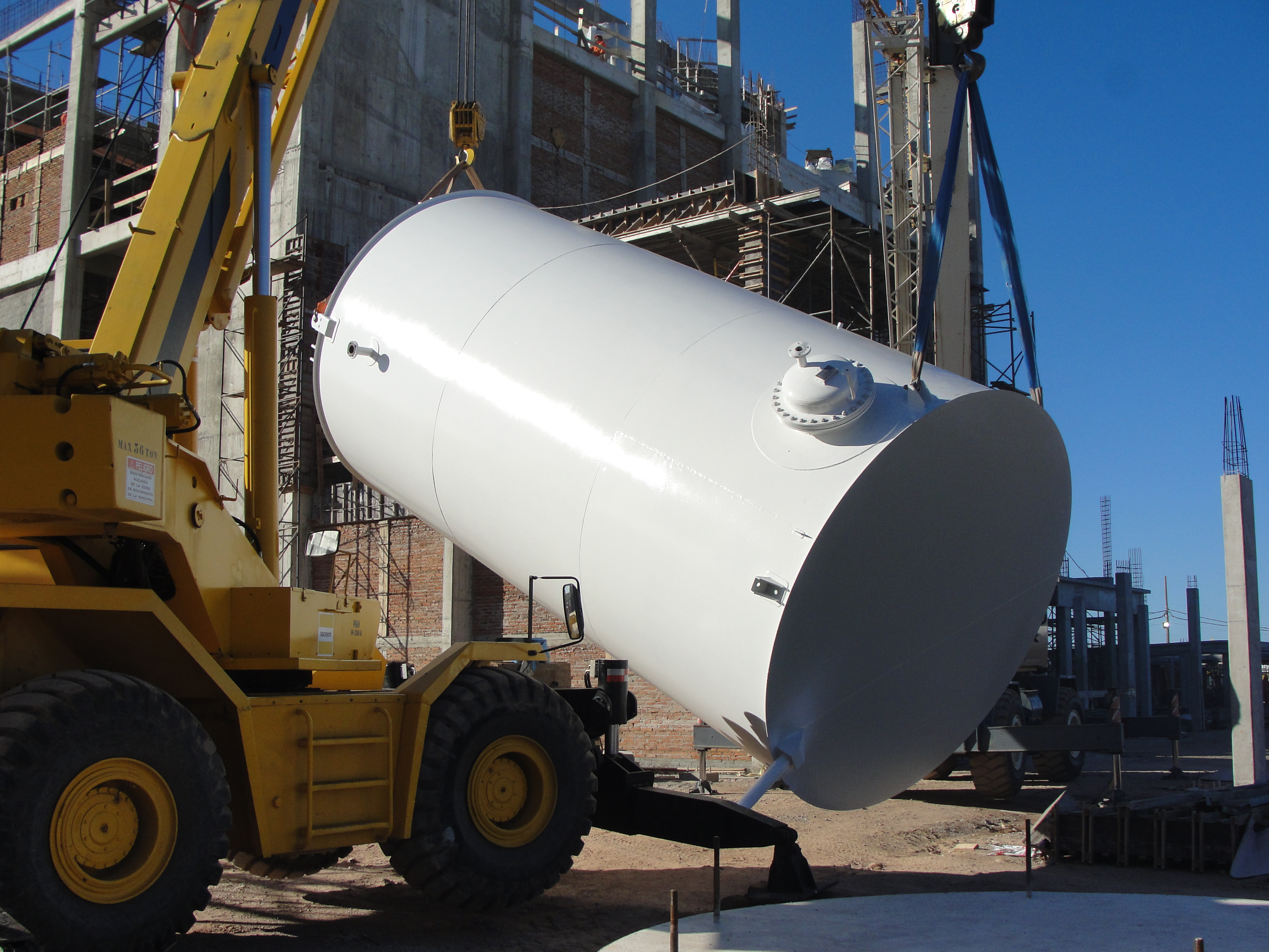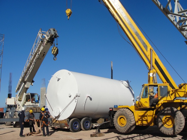 Suministro y montaje de tanque de alimentación de caldera de 10m3 con estructura asociada, tanque pulmón de aire comprimido y tanque de Fuel Oil de 80m3 con calentadores tubulares.