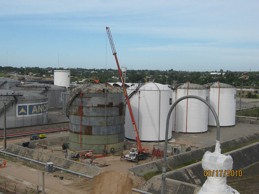 Suministro de materiales y montaje de 2 tanques para almacenamiento de etanol de 2.500m3 de capacidad, con techo flotante. Diseñados y construidos según norma API650.
