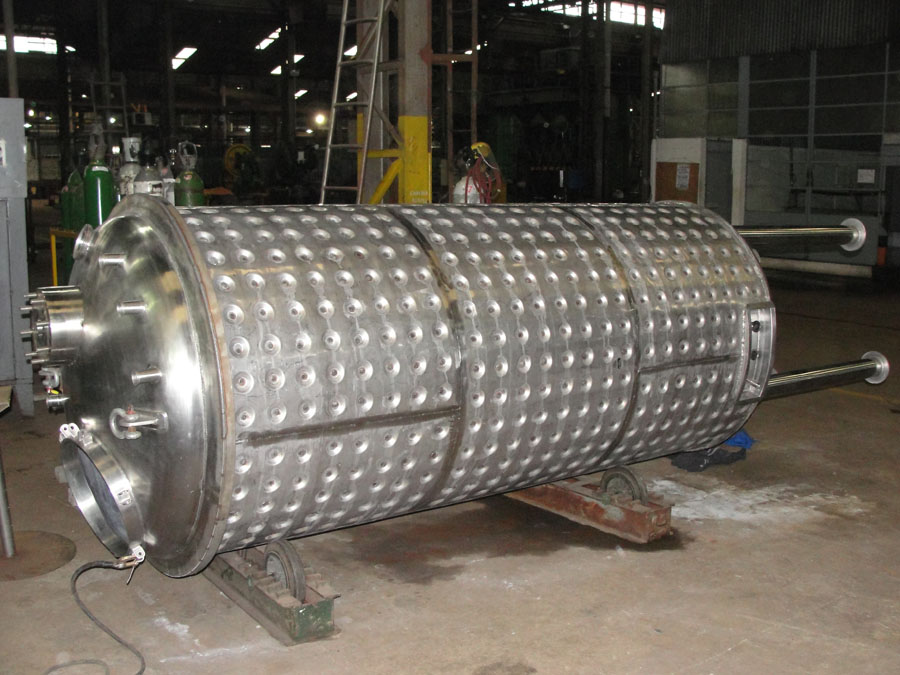 Suministro de tanque de cultivo bacteriano, con camisa de calentamiento en envolvente y cabezal inferior, fabricado integralmente en acero inoxidable 304L. Diseño y fabricación según ASME BPVC Vol.VIII División 1.