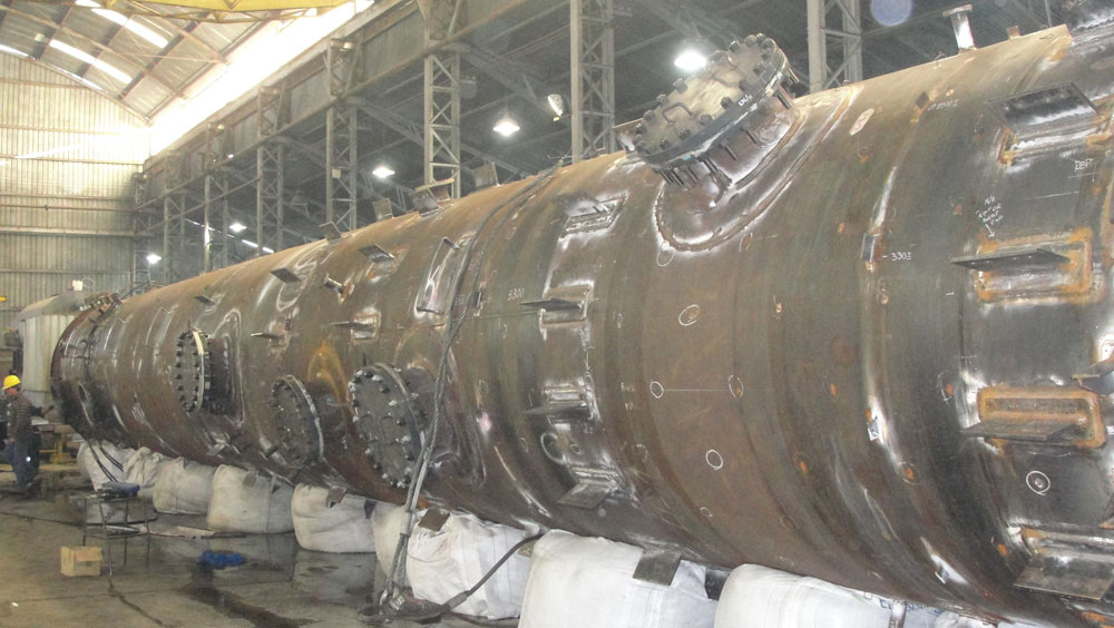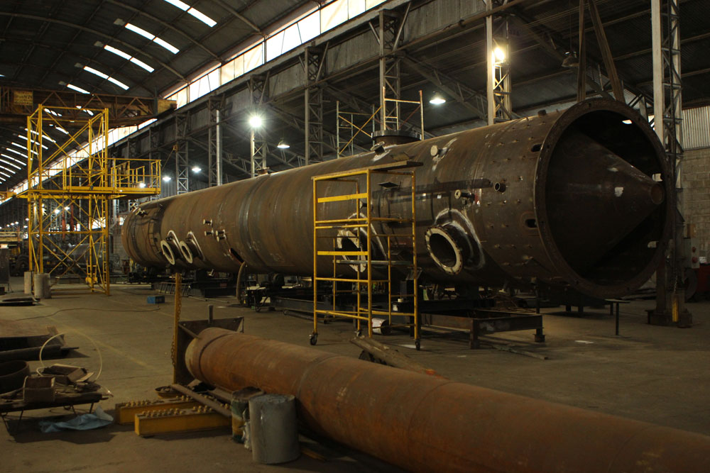 Suministro de torre fraccionadora de Cracking, de 23m de alto y 2.6m de diámetro, fabricada con chapa tipo CLAD de inoxidable. Diseño y fabricación según ASME BPVC Vol.VIII División 1