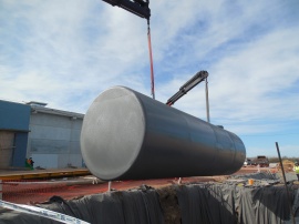 Suministro y montaje de tanque de alimentación de caldera de 10m3 con estructura asociada, tanque pulmón de aire comprimido y tanque de Fuel Oil de 80m3 con calentadores tubulares.