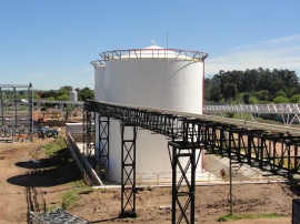 Fabricación en taller y montaje de un tanque para almacenamiento de sebo vacuno de 250m3 de capacidad, aislado y con serpentín de calentamiento. Diseñado y construido según norma API650.
